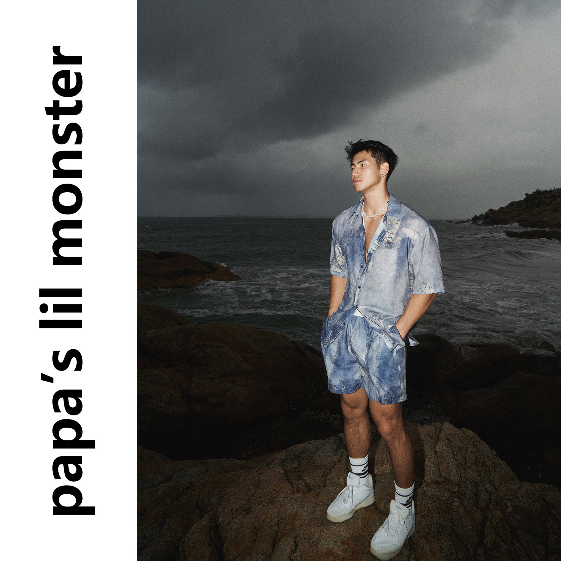 PAPASLILMONSTER [Original] Island Resort Beach Shirt Men's Vintage Denim Print Shirt