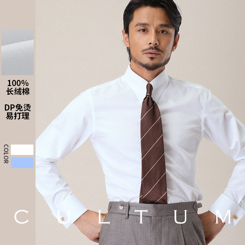 CULTUM Haute Couture 100-Count DP Iron-Free Ear Collar Shirt Men's French Cuff Gentleman's Large Pointed Collar Shirt