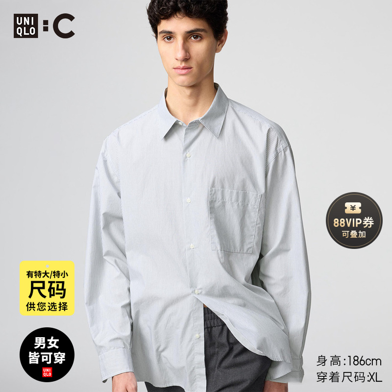 Uniqlo collaboration model/men's and women's loose striped shirt/long-sleeved shirt casual 480763