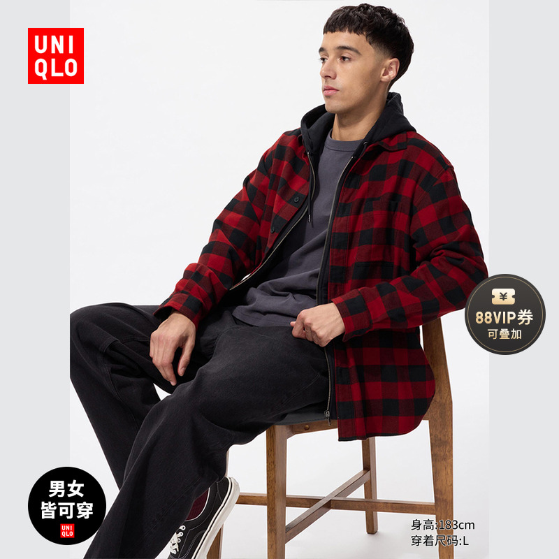 Uniqlo men's and women's flannel plaid shirts long-sleeved shirts thin coats 25 fall-winter 480772