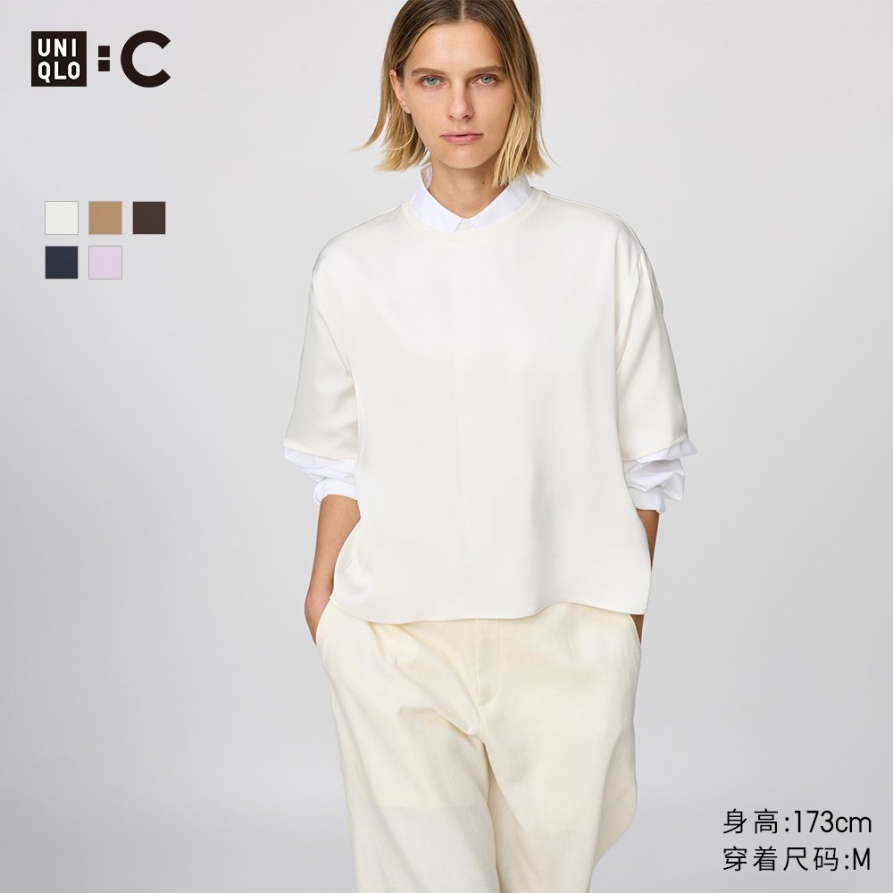 Uniqlo collaboration / women's satin loose short shirt / short-sleeved shirt 483049