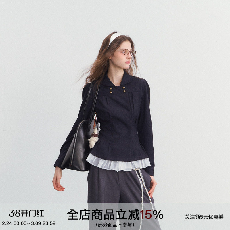 SPEAR YOUTH "No Alternative" Double-Breasted Denim Pleated Waist Shirt Commuter Top Jacket