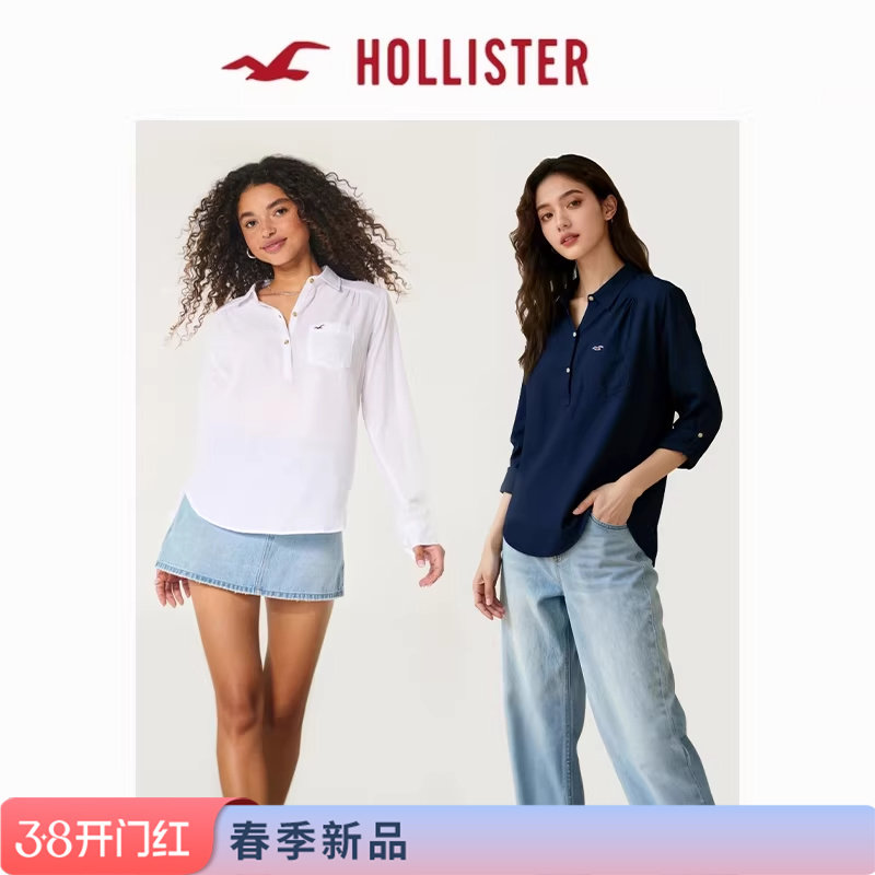 Hollister Little Seagull Pattern American Classic Three-Button Simple Versatile Shirt Women's 340-6043