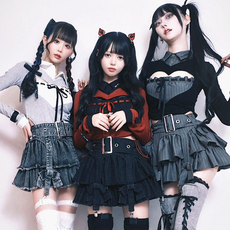 Japanese brand Harajuku Hidol love cut-out open chest knitted color block elegant sexy slim lapel shirt light lo style
