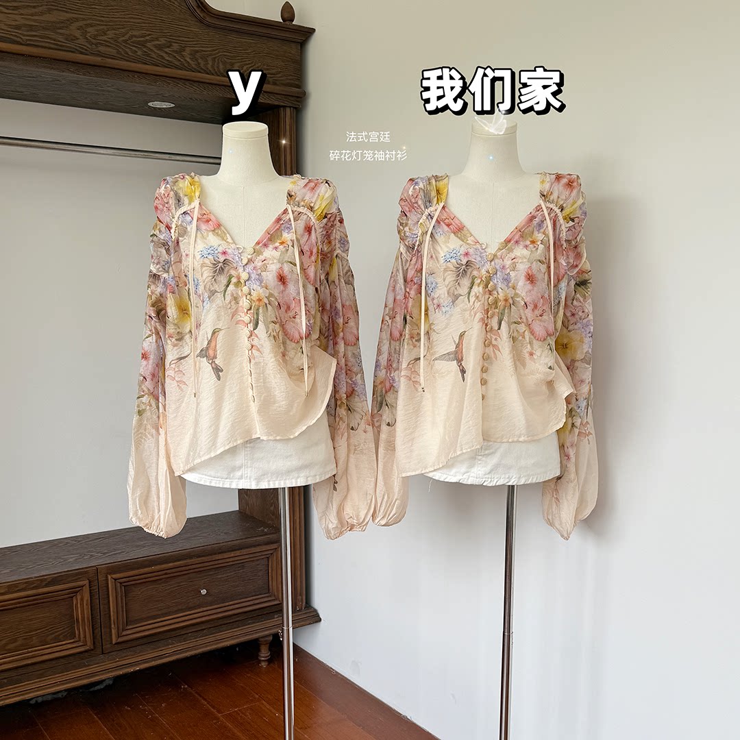 Jiuyue Wu Wini Mansa French court loose floral lantern sleeve shirt female giant good-looking small shirt long-sleeved top