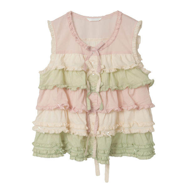 Layered artifact Dahong official classic with a ruffle collar sleeveless shirt and a small vest lace versatile base layer