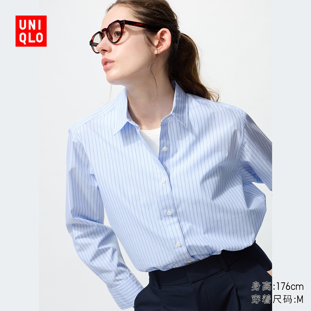 Uniqlo Women's Cotton Striped Shirt/Long Sleeve Shirt Thin Jacket 25 Fall/Winter New 479079