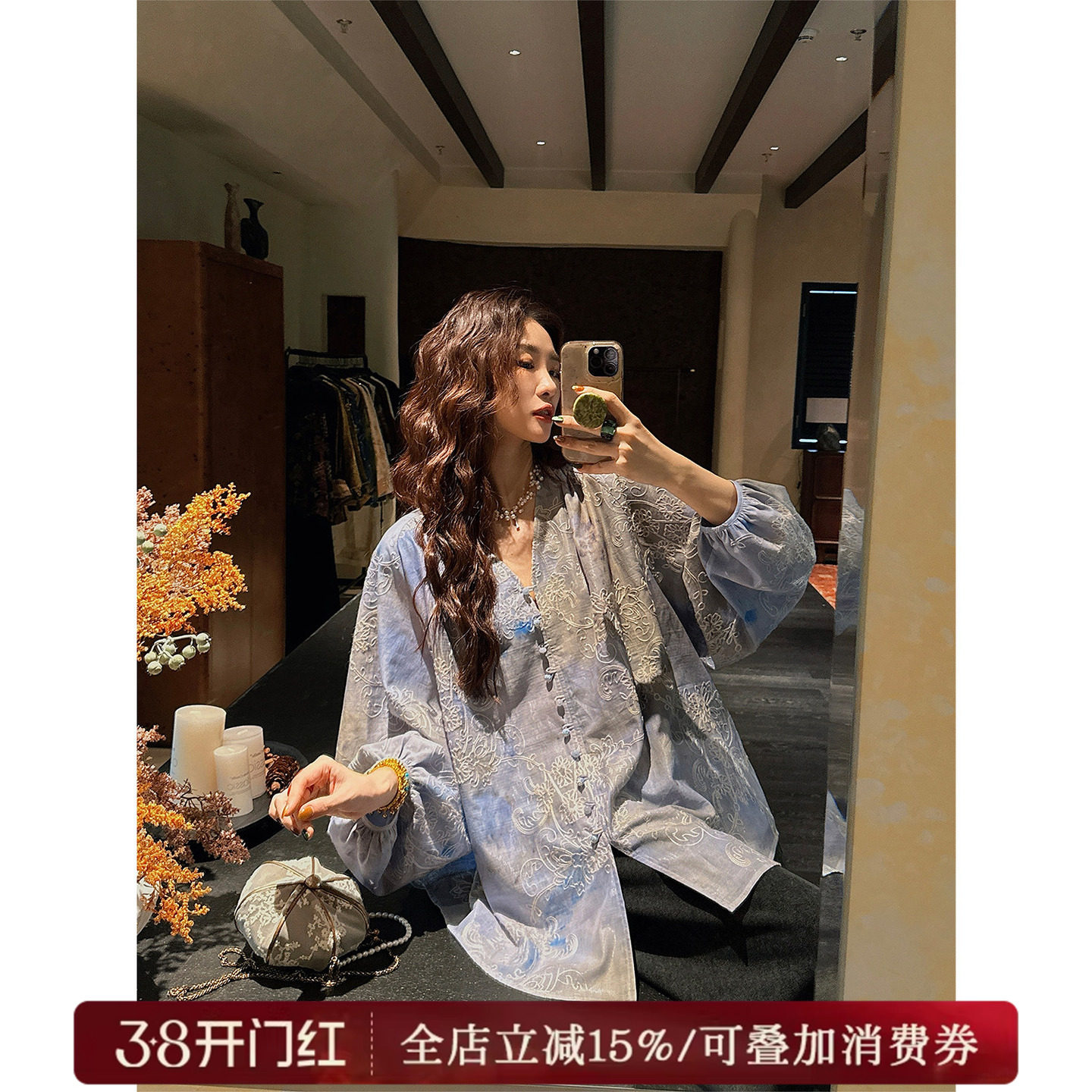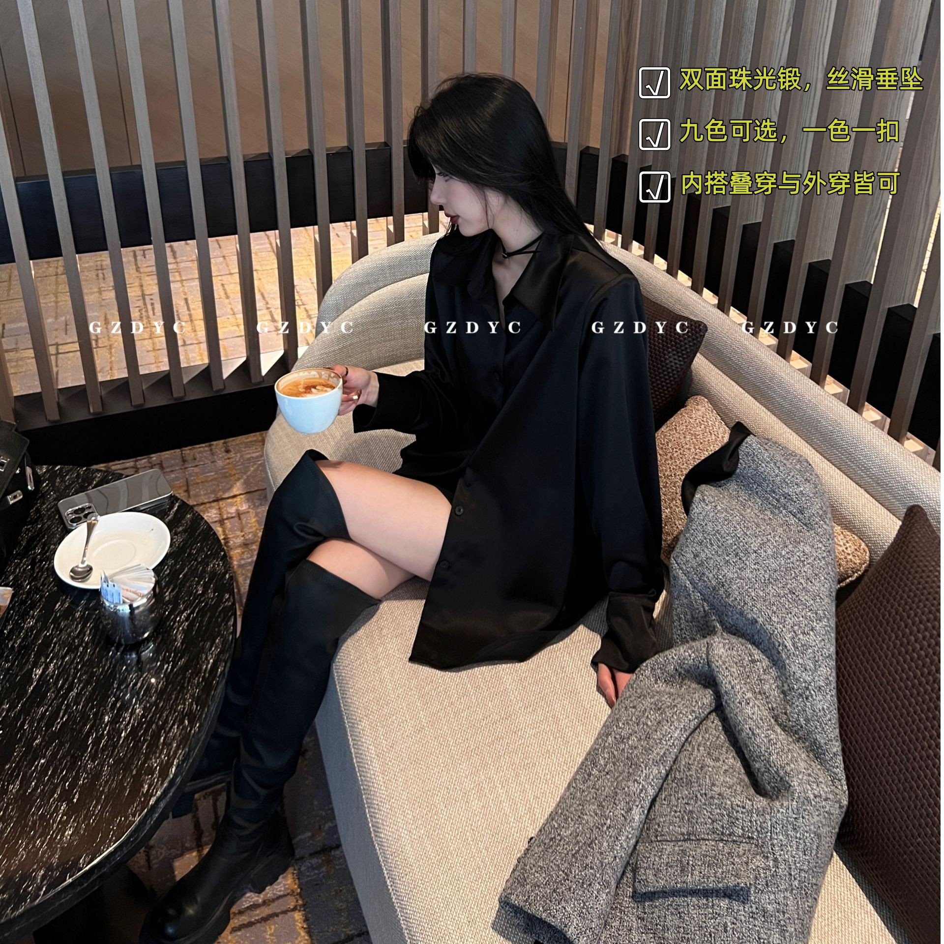 Dove's wardrobe (black rose) satin black shirt women's early spring cardigan crisp lazy loose ladies shirt