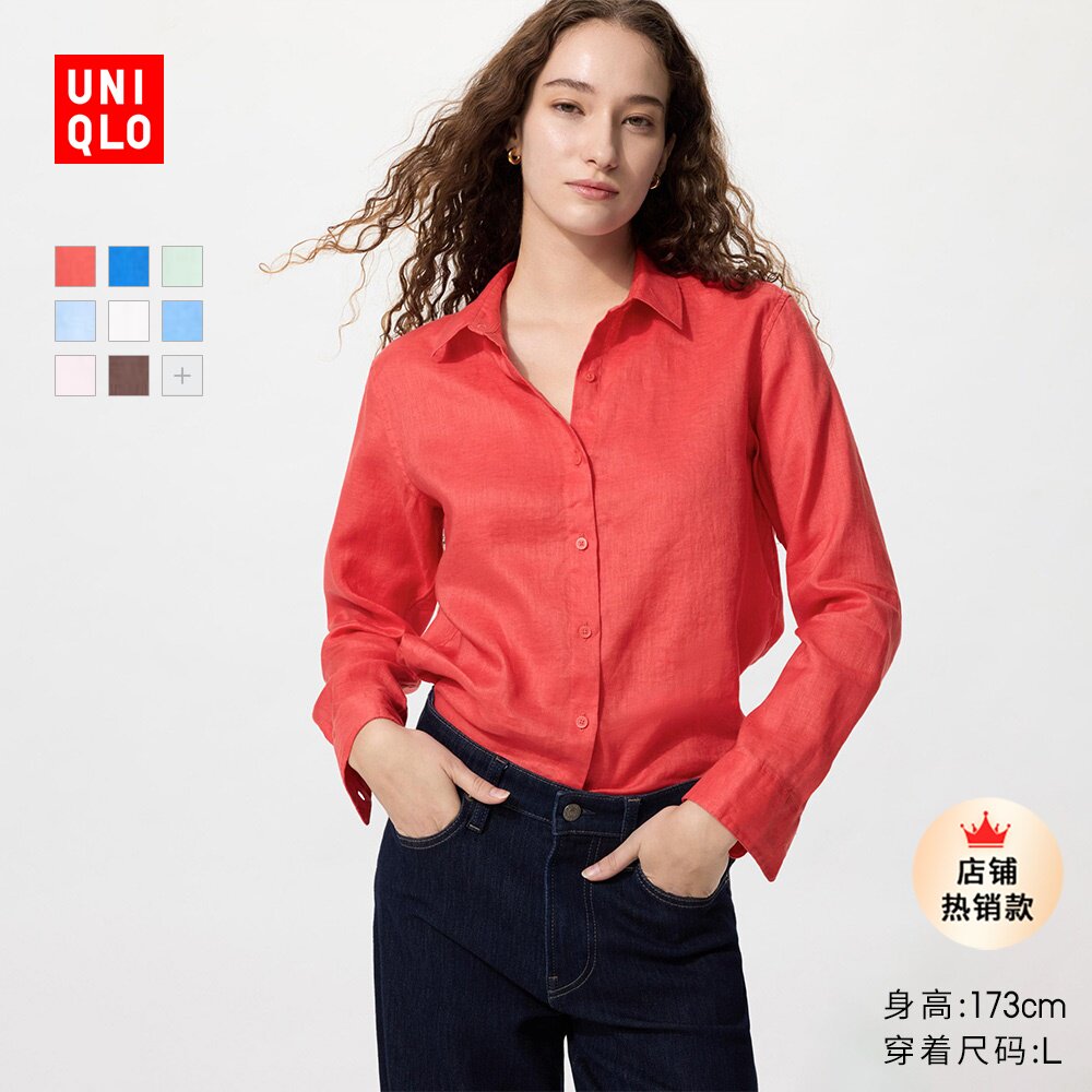 Uniqlo Women's French Linen Shirt/Long Sleeve Shirt 26 Spring/Summer New 483868