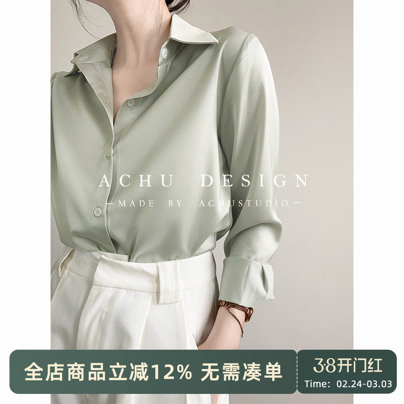 ACHU Spontaneous Minimalist Green Satin Shirt Women's Premium Professional Interview Shirt Light Workplace Commuter Top
