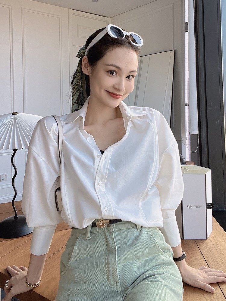 MEIYANG three-dimensional cut shirt commuter casual lapel buttoned loose silhouette long sleeve white shirt