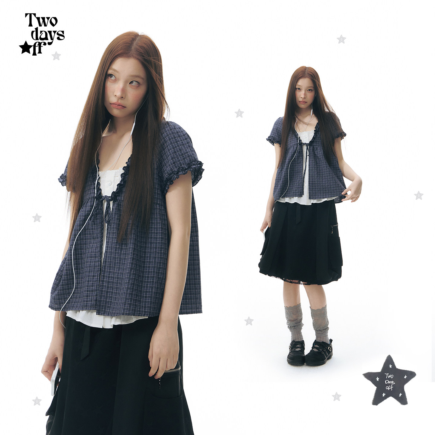 Twodaysoff Yabi has an old-fashioned design fake two-piece contrasting cotton plaid shirt short-sleeved women's top