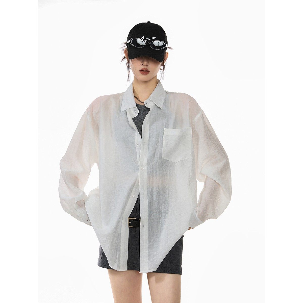 ICH MODE American white shirt women's summer loose physical sunscreen cover-up shirt jacket long sleeve top