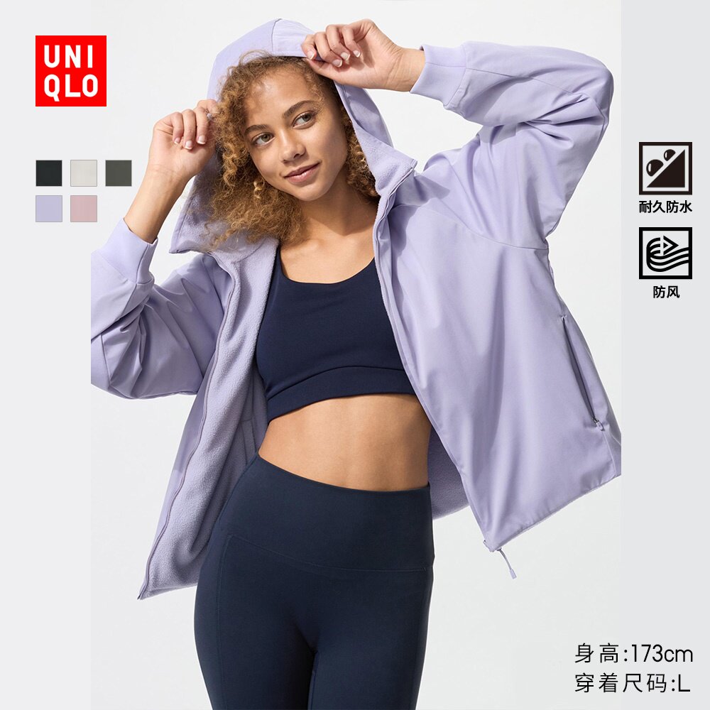 Uniqlo women's reversible windproof polar fleece zippered hooded jacket outdoor waterproof 479697