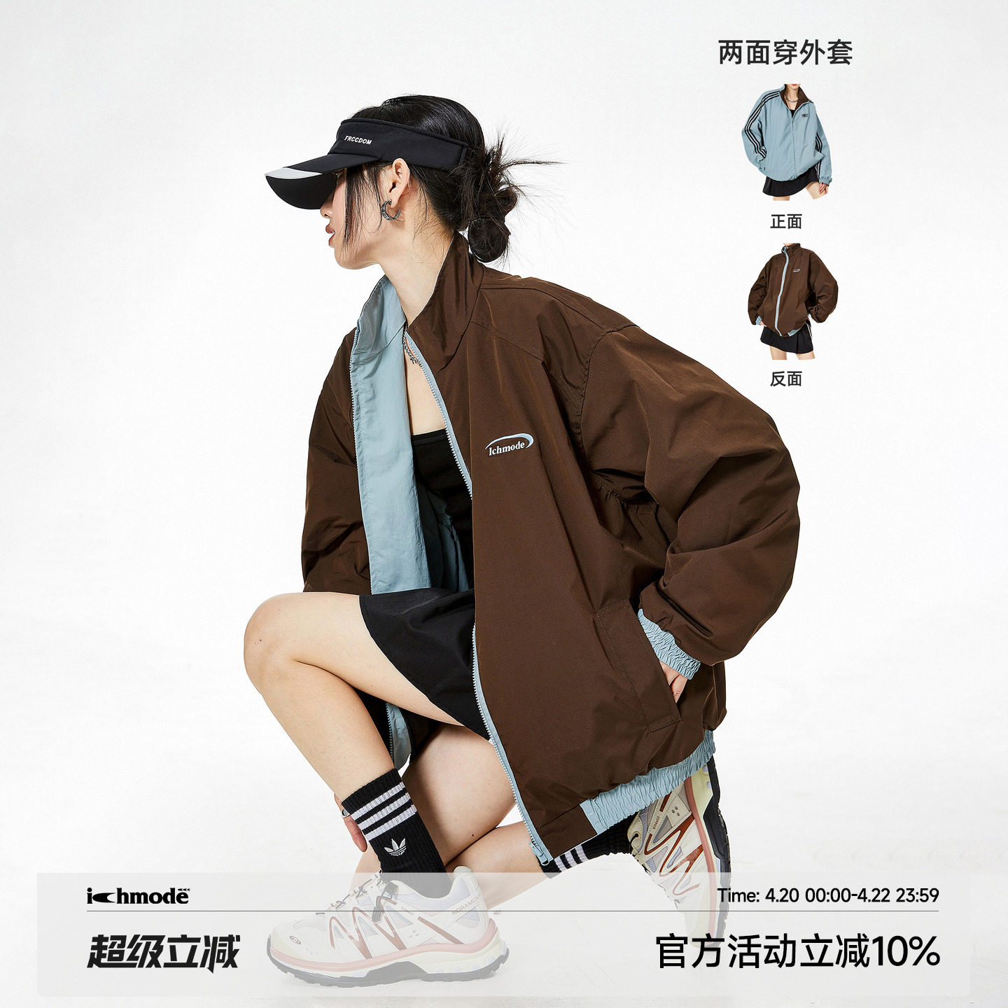 ICH MODE American Reversible Cardigan Jacket Women's Spring Loose Casual Sports Jacket Top 2026 New Style