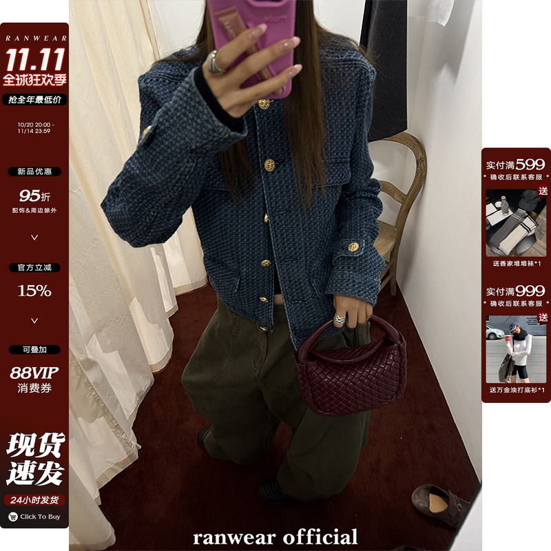 Ranwear is the king of popularity! Old money style b*v niche retro denim jacket short stand-up collar jacket