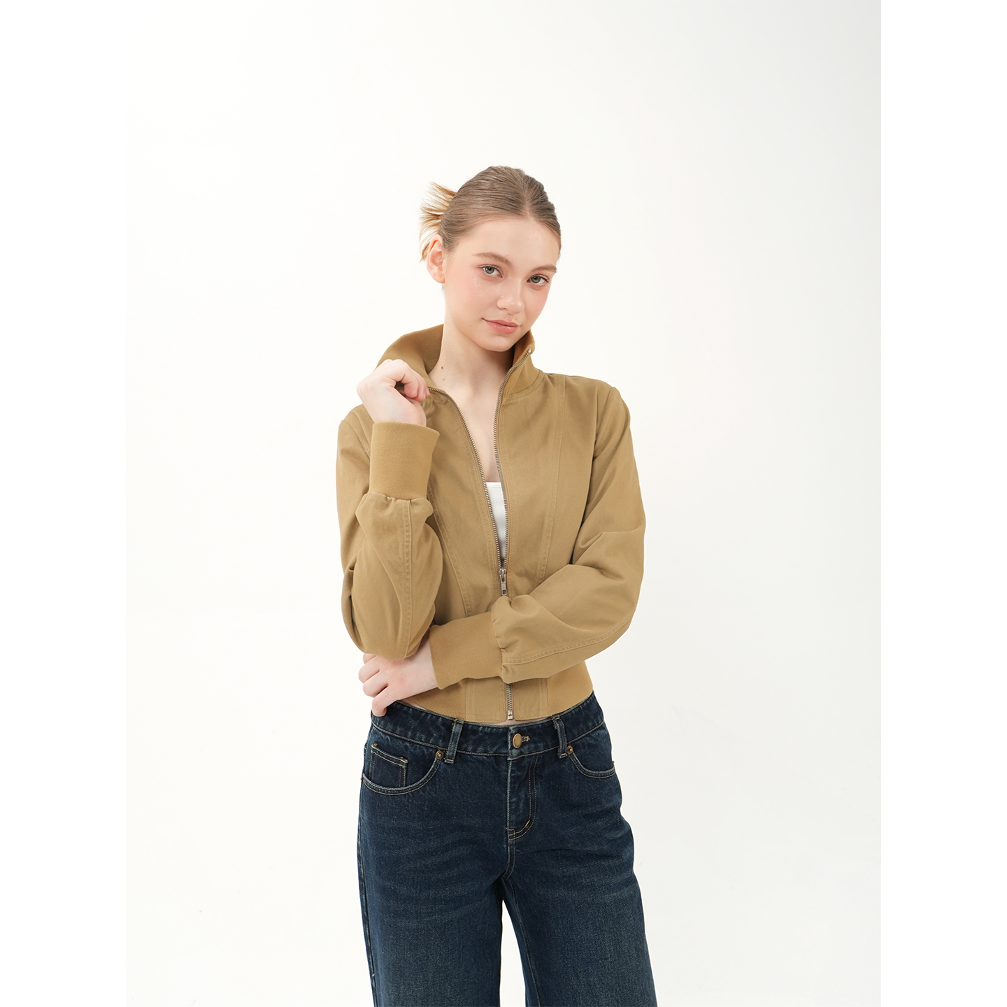 Jim Kennet's vintage cotton cropped washed khaki ribbed jacket jacket