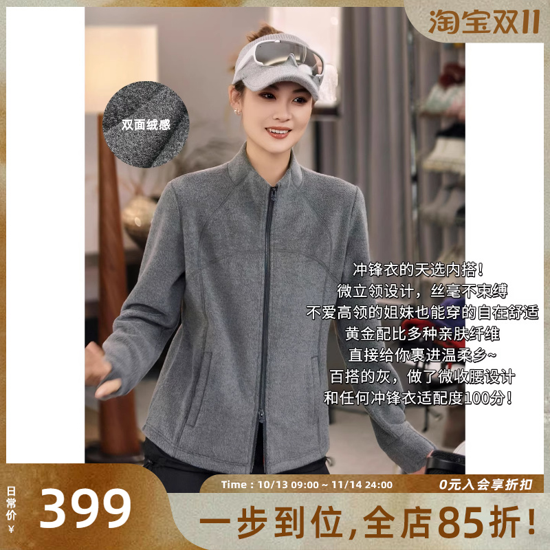 LU~ stand-up collar small waist heating double-sided velvet autumn and winter slimming outdoor windproof light warm cardigan jacket