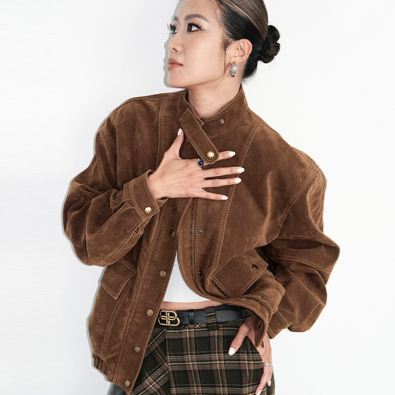 TR She Hot Western Denim Brown Vintage Distressed Suede Zipper Loose Versatile Jacket Coat