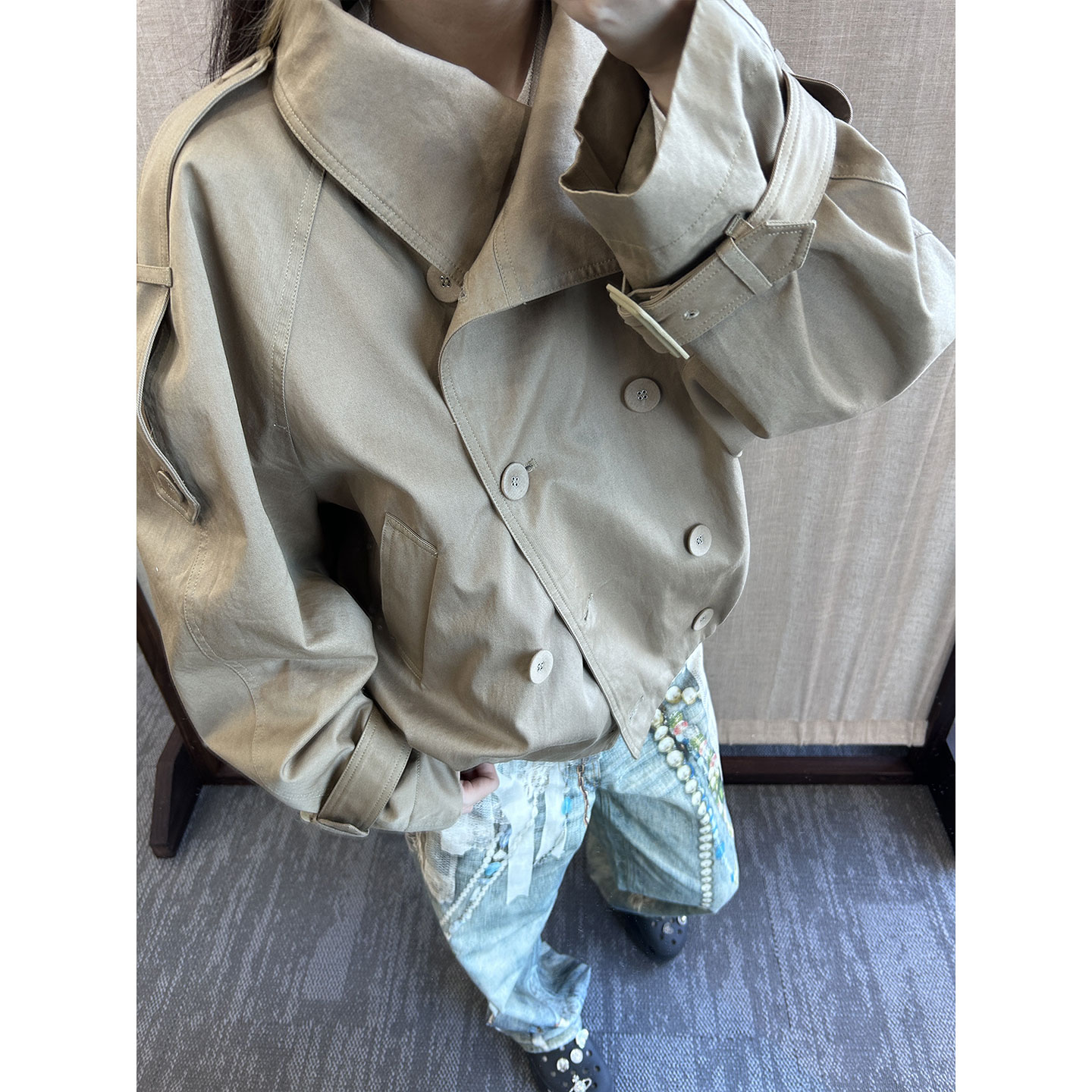 PD's greatest work old money style high-end khaki brown double-breasted large profile cmvx short jacket trench coat