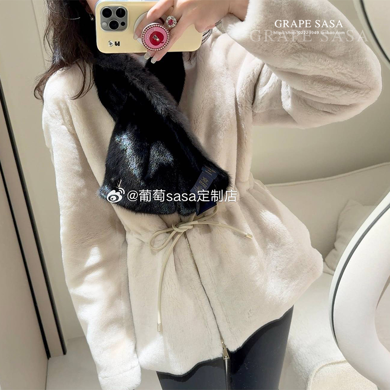 【Grape SASA】Limited edition M fur integrated imported South African leather lightweight and warm spliced down jacket jacket