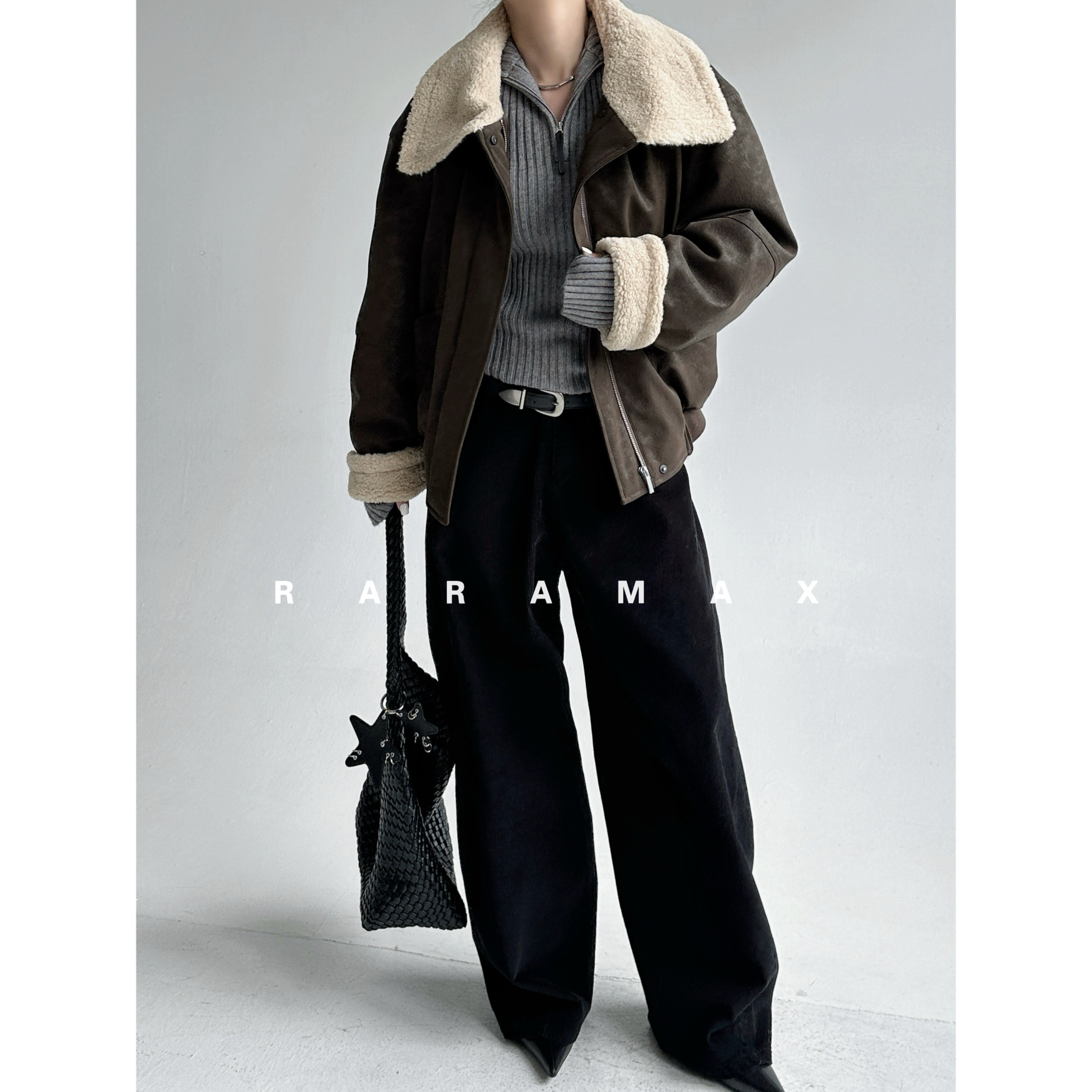 Koala's same American street design leather jacket women's autumn loose flight jacket