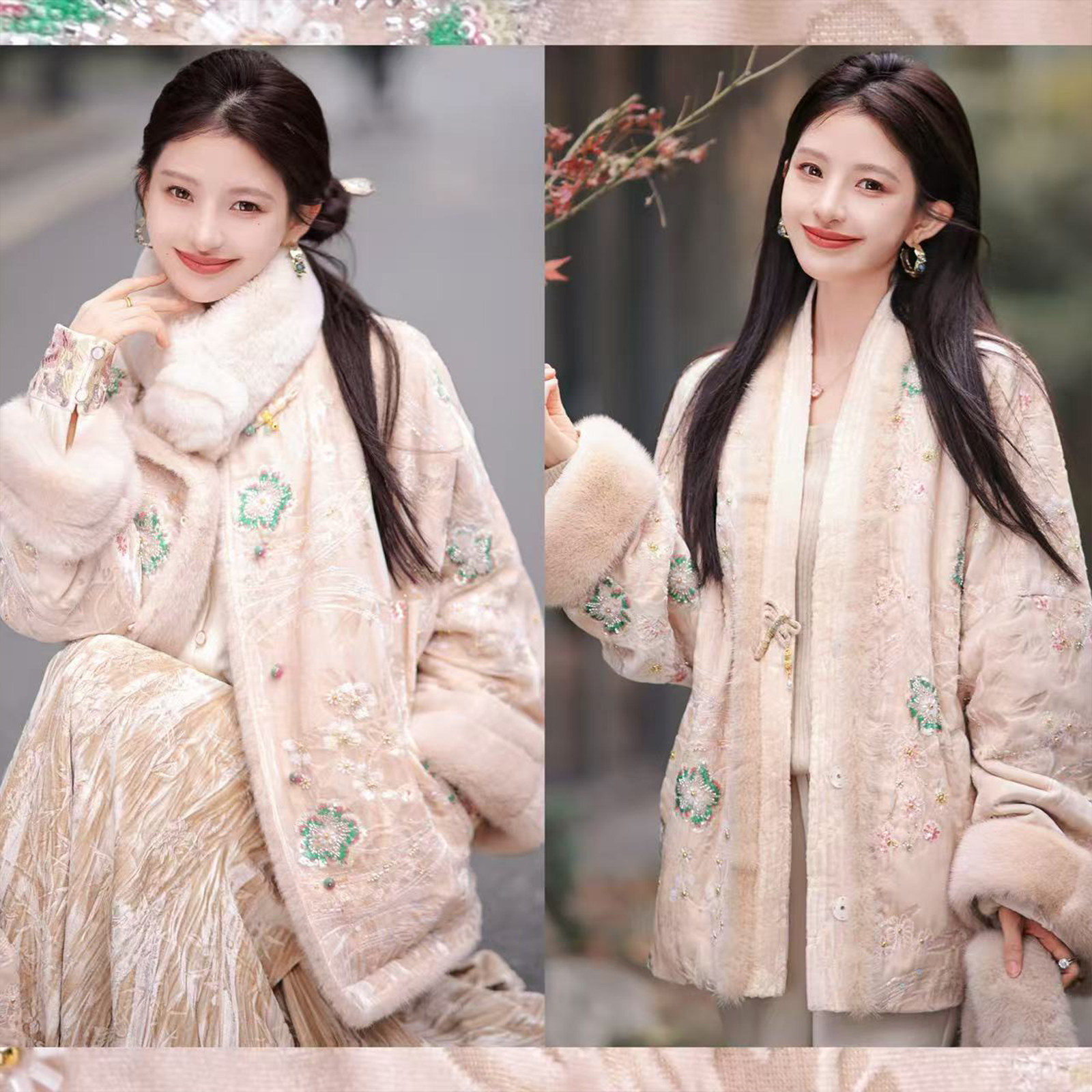 Sanji Black Flower [Heavenly Official Blessing] New Chinese beaded embroidered velvet jacket women's winter clothes thickened and fleece length and short