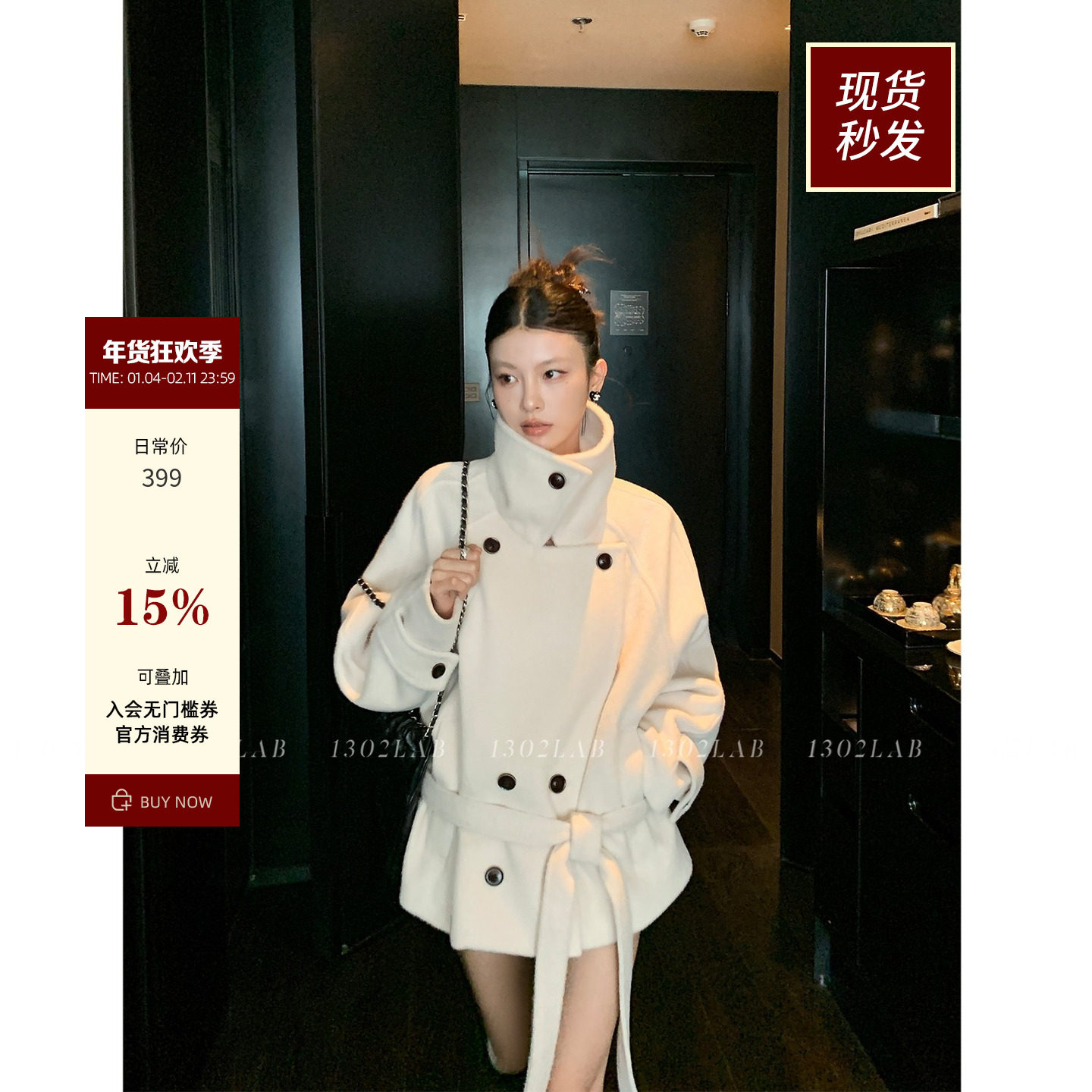 LINONEONE strongly recommends Lem*r-style beige large lapel silhouette woolen jacket with stand-up collar temperament tweed coat