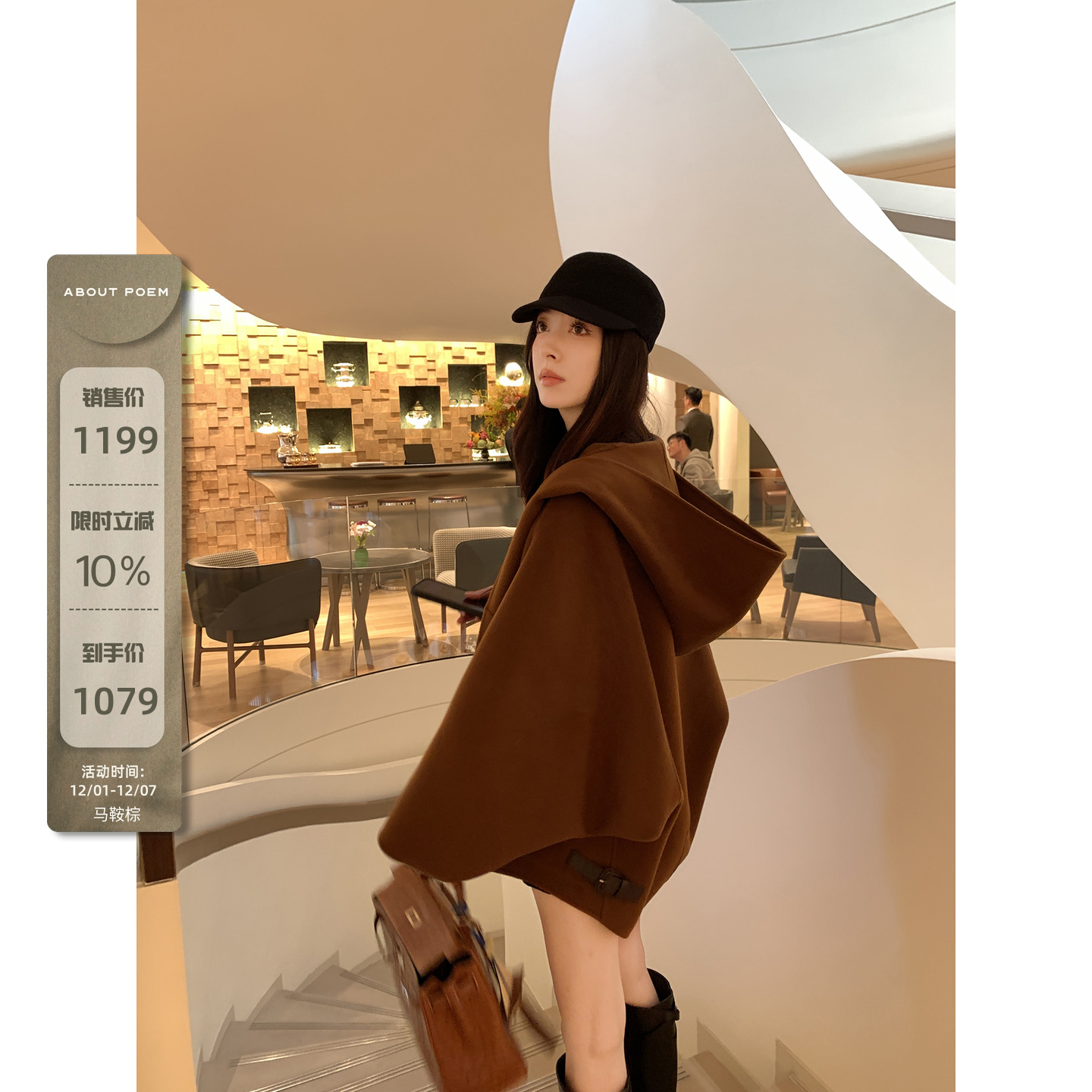 Xinlei Lin "Kim Min Hee 2.0" 60 wool 10 alpaca coffee color woolen coat women's autumn and winter coat