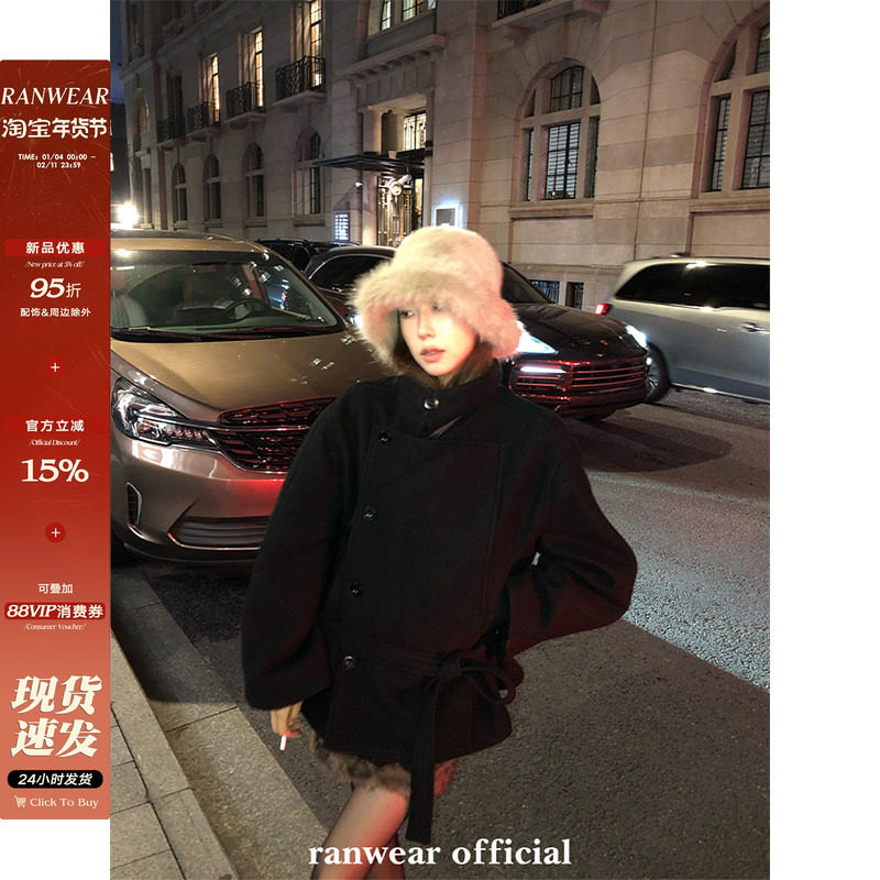 Ranwear Annual Blockbuster Kim Min Hee Simple and High-End Lapel 60% Sheep Woolen Coat Jacket