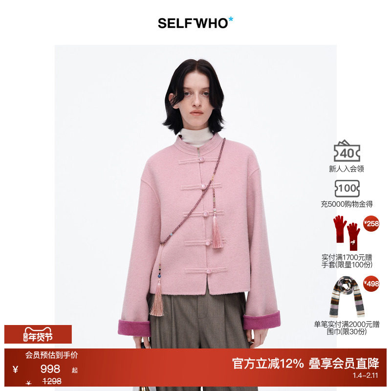 [Jiang Yan's same style] SELFWHO Sheep Wool New Chinese Coat Jacket Women's Winter National Style Pink Short Top