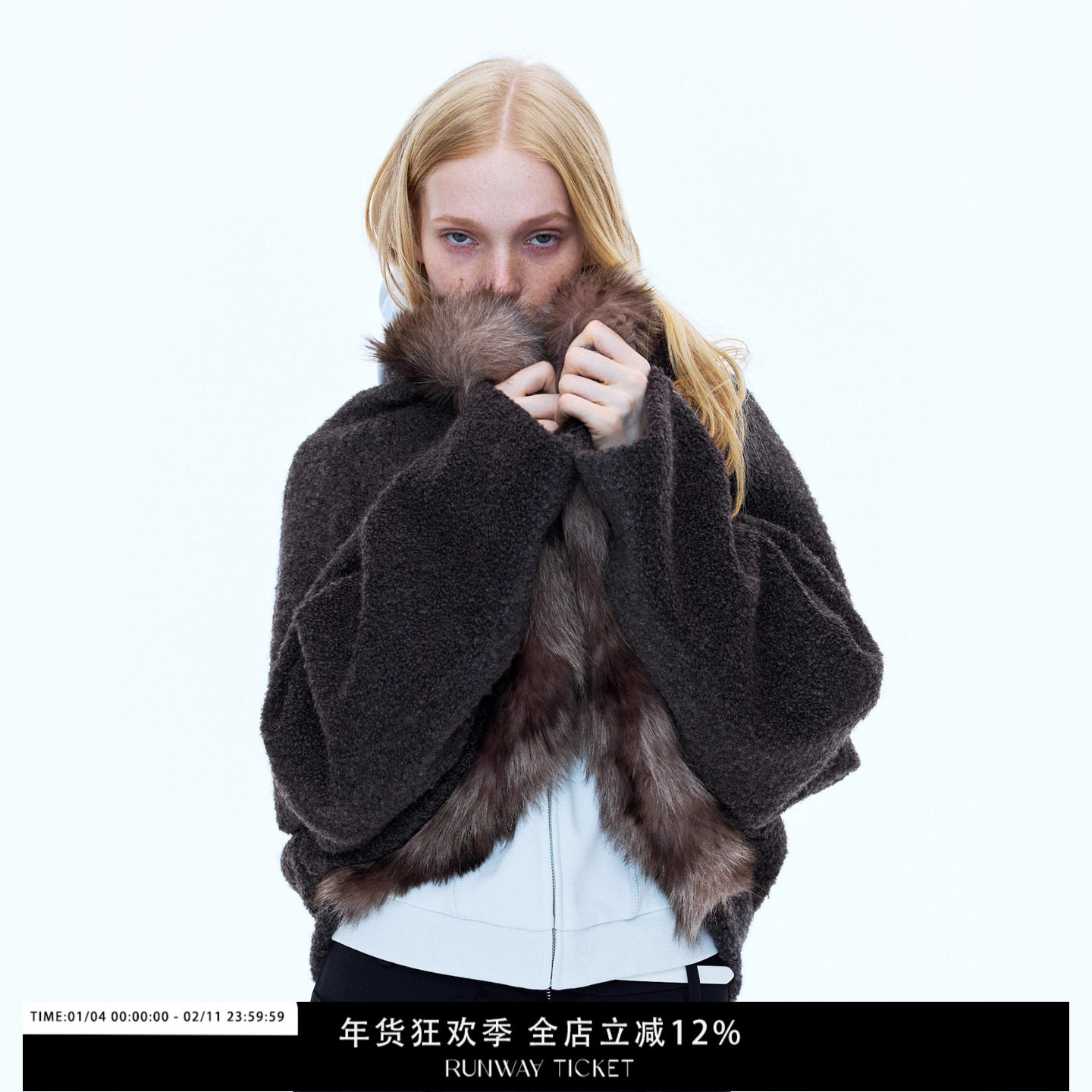 RUNWAY TICKET Zhou Jieqiong has the same style of vintage bat sleeve wool jacket fur collar winter top