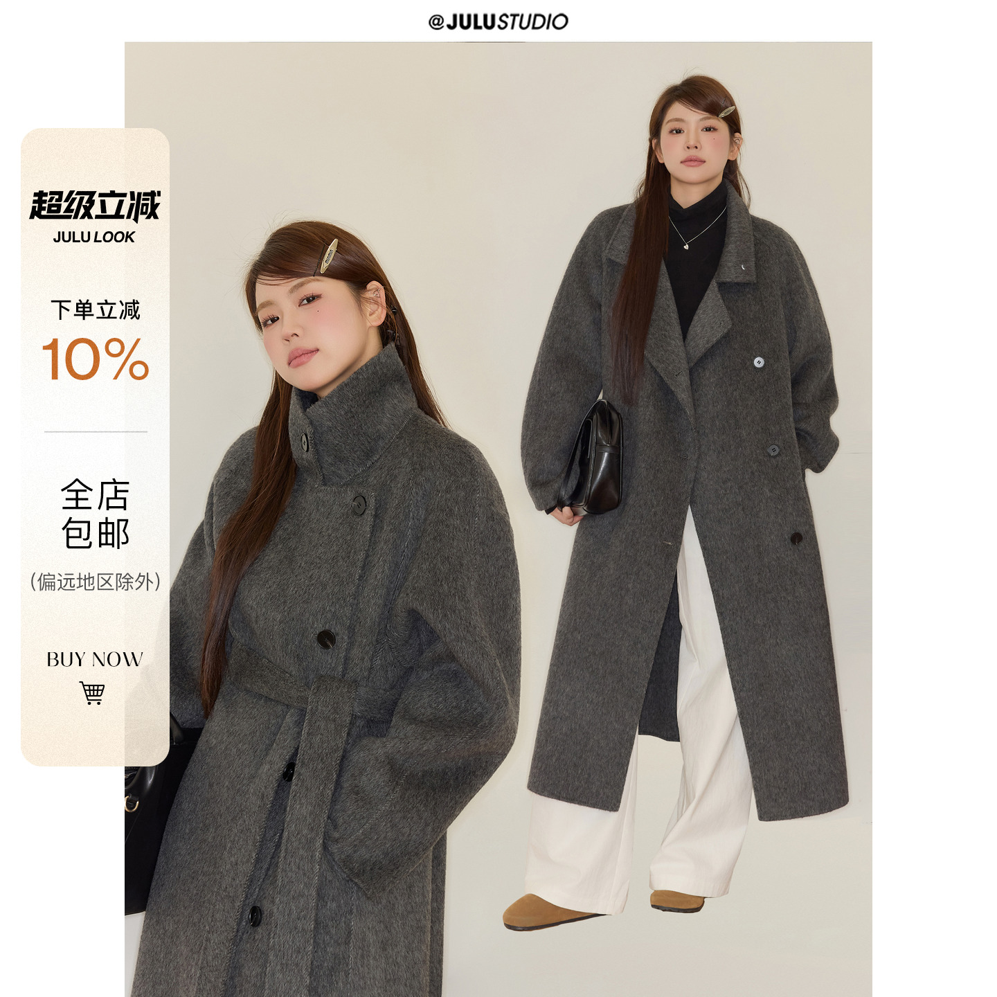 Julu Studio "Nordic Morning Mist" slightly chubby mm simple classic stand-up collar coat handmade wool reversible wet winter