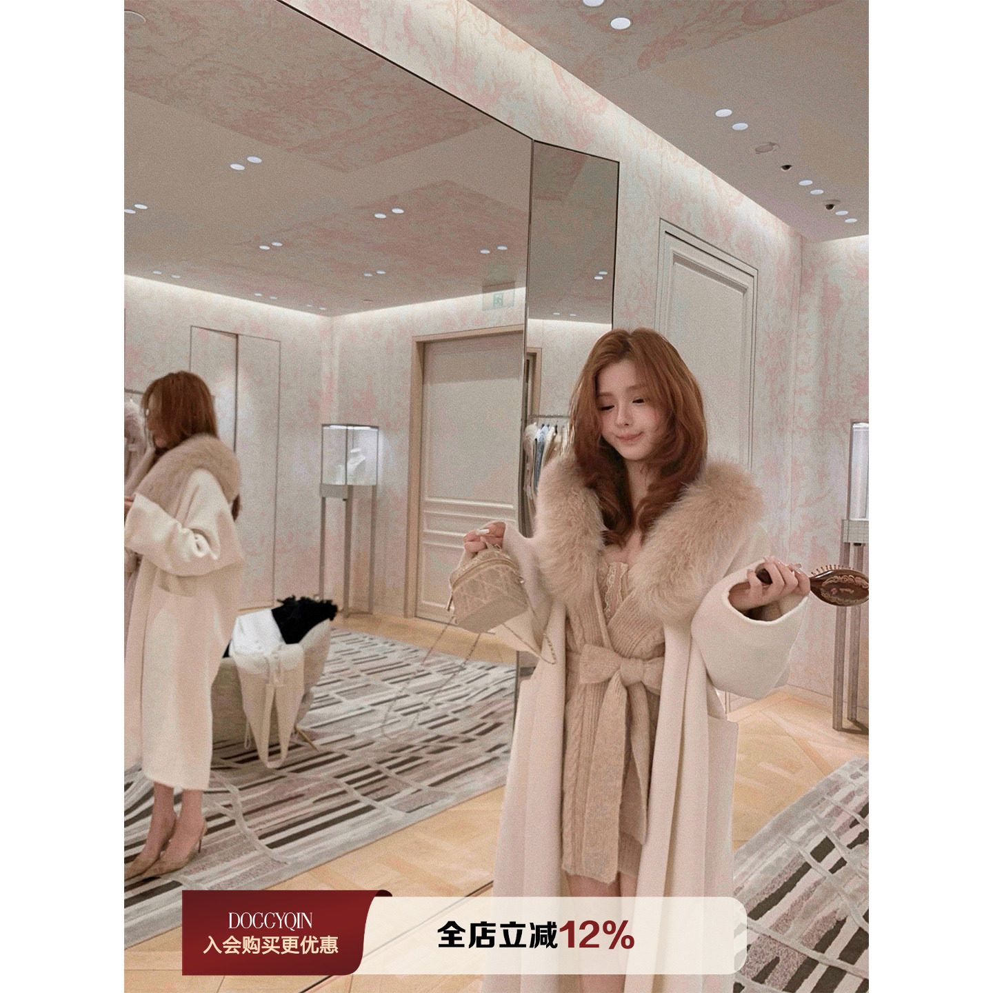 DoggyQin light luxury/cashmere feel giant drape coat & fox fur collar Albaka alpaca sweater