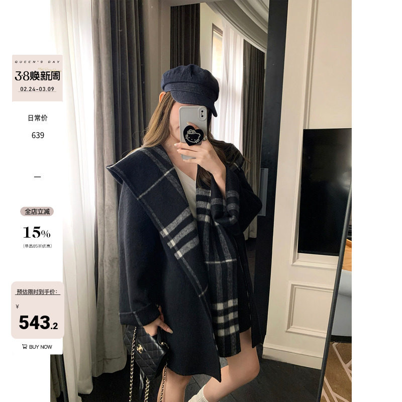 Hhyii wandering Paris vintage plaid cape wool coat women's fall and winter luxury shawl reversible jacket
