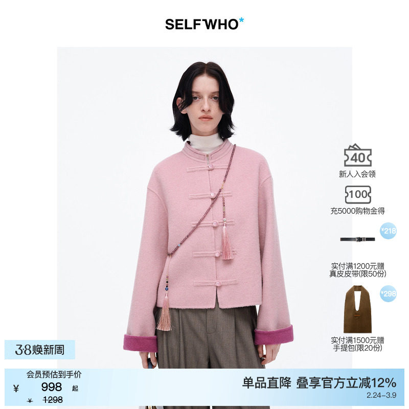 [Jiang Yan's same style] SELFWHO Sheep Wool New Chinese Coat Jacket Women's Winter National Style Pink Short Top