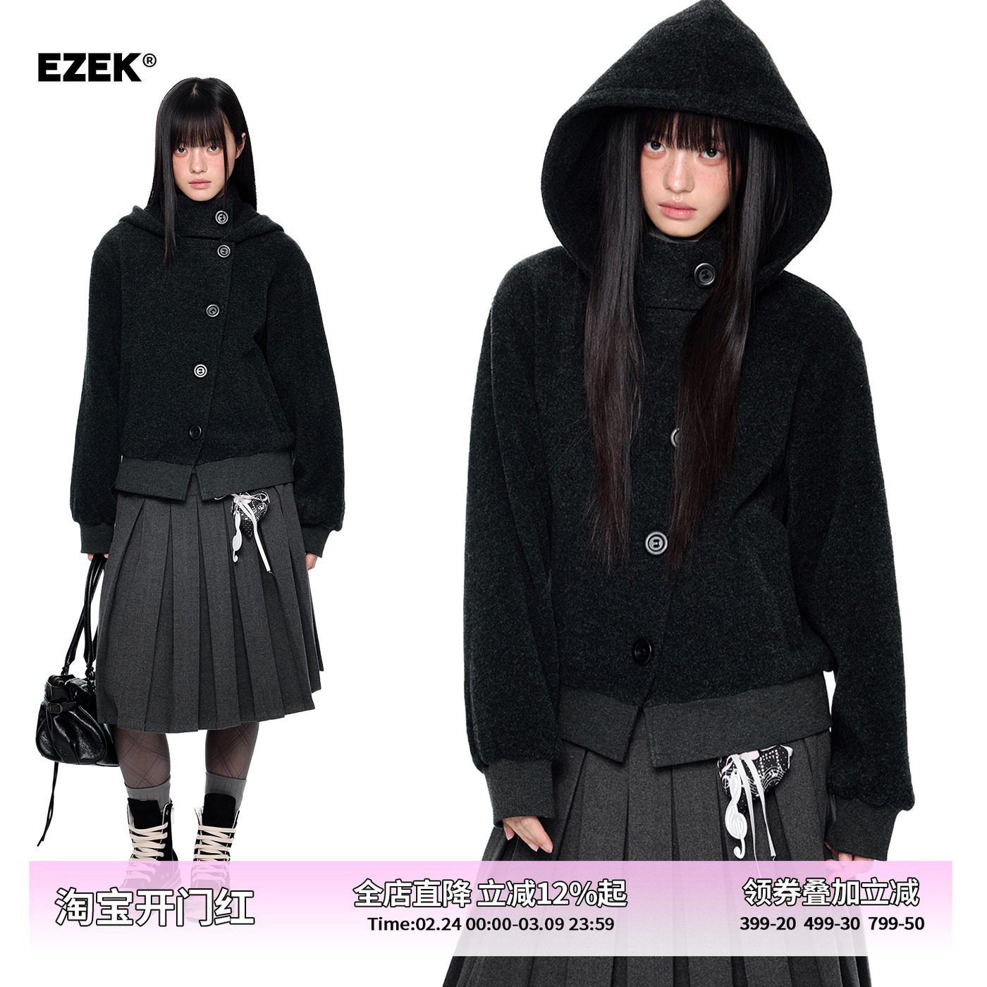 EZEK Collegiate Button Short Antique Hooded Jacket Women's Spring New Retro Casual Loose Versatile Sweatshirt