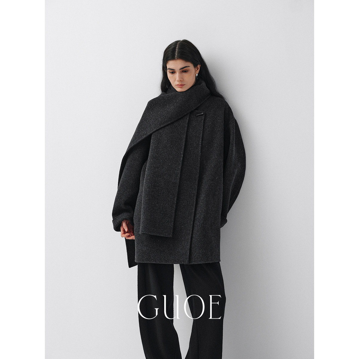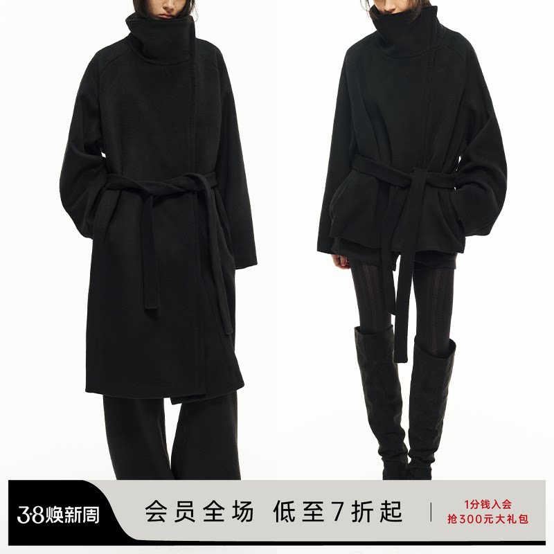JCAESAR WOMEN diagonal zipper strapped midi tweed coat high gram heavy Australian wool loose wool coat