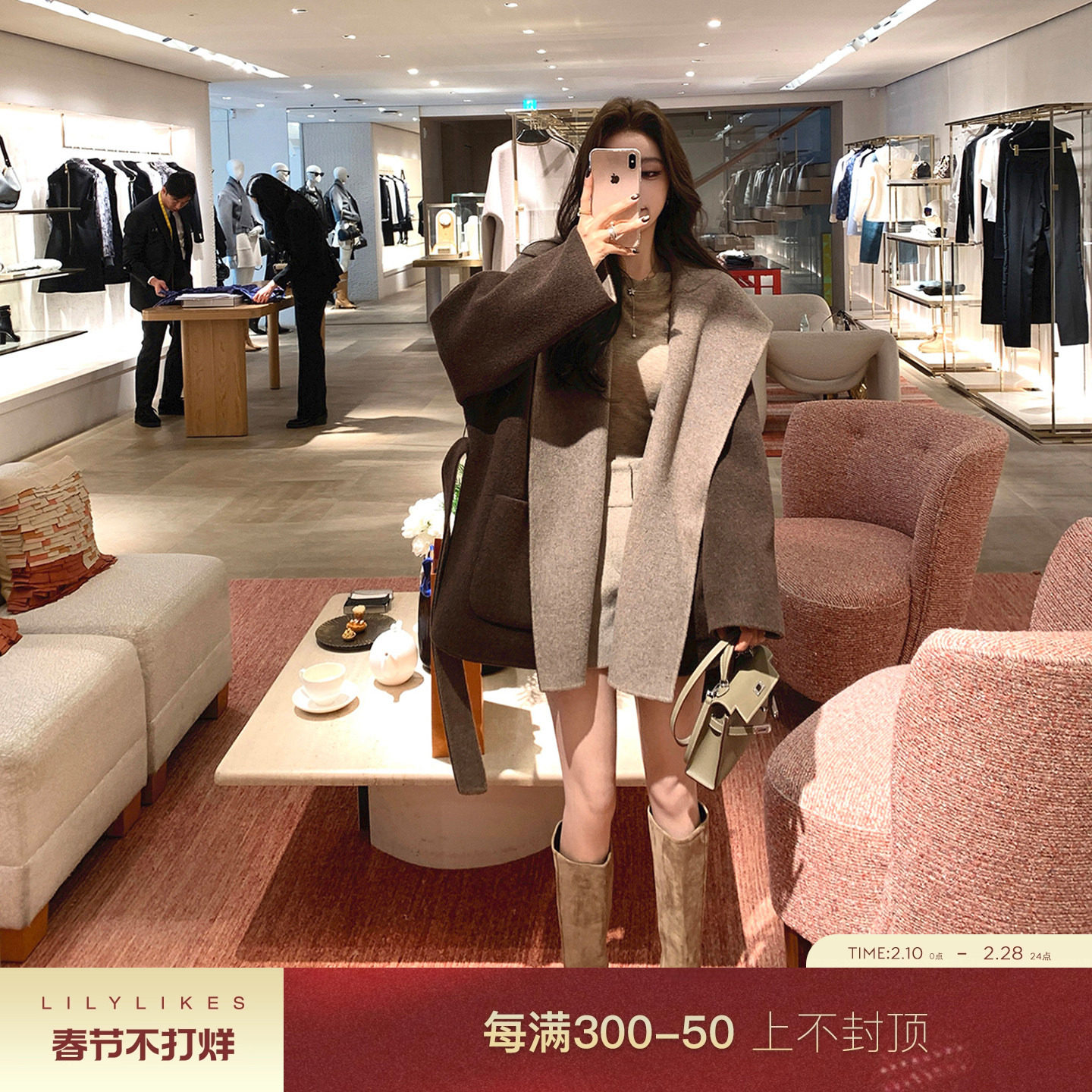 Mocha brown reversible cashmere coat women's mid-length lazy style 2025 new Korean loose wool wool jacket