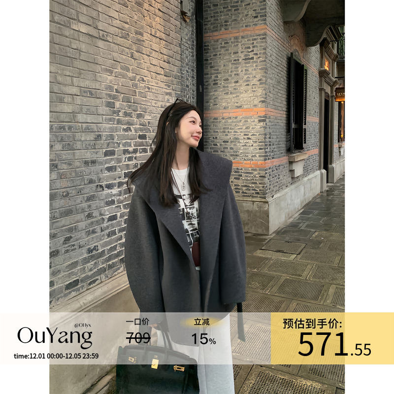 Mere Ouyang wool reversible woolen coat women's winter small short woolen loose hooded woolen jacket