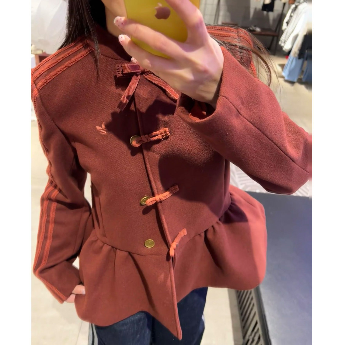 Celebrity same clover New Year's model new Chinese flower bud sports jacket women's autumn and winter waist tuck warm slim jacket