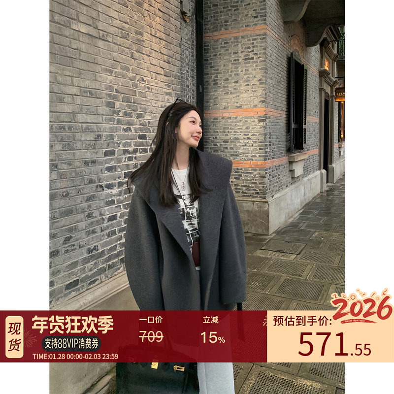 Gray reversible cashmere coat women's autumn and winter high-end 2025 new Korean loose mid-length woolen wool jacket