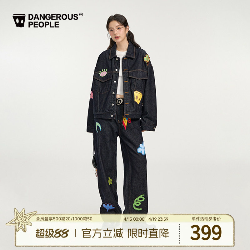 Dangerouspeople Xue Zhiqian dsp Childlike Denim Print Trendy High Street Loose Jacket Pants Suit
