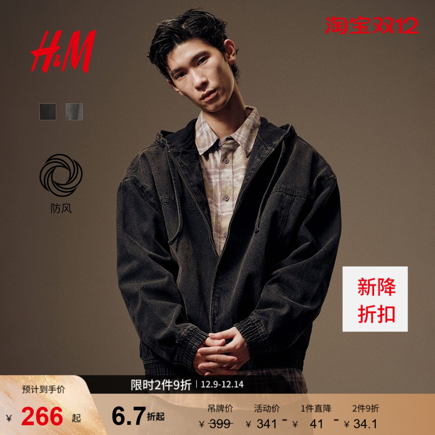 HM Men's Denim Jacket Fall 2025 New Loose-Fit American Trendy Hooded Jacket 1300912