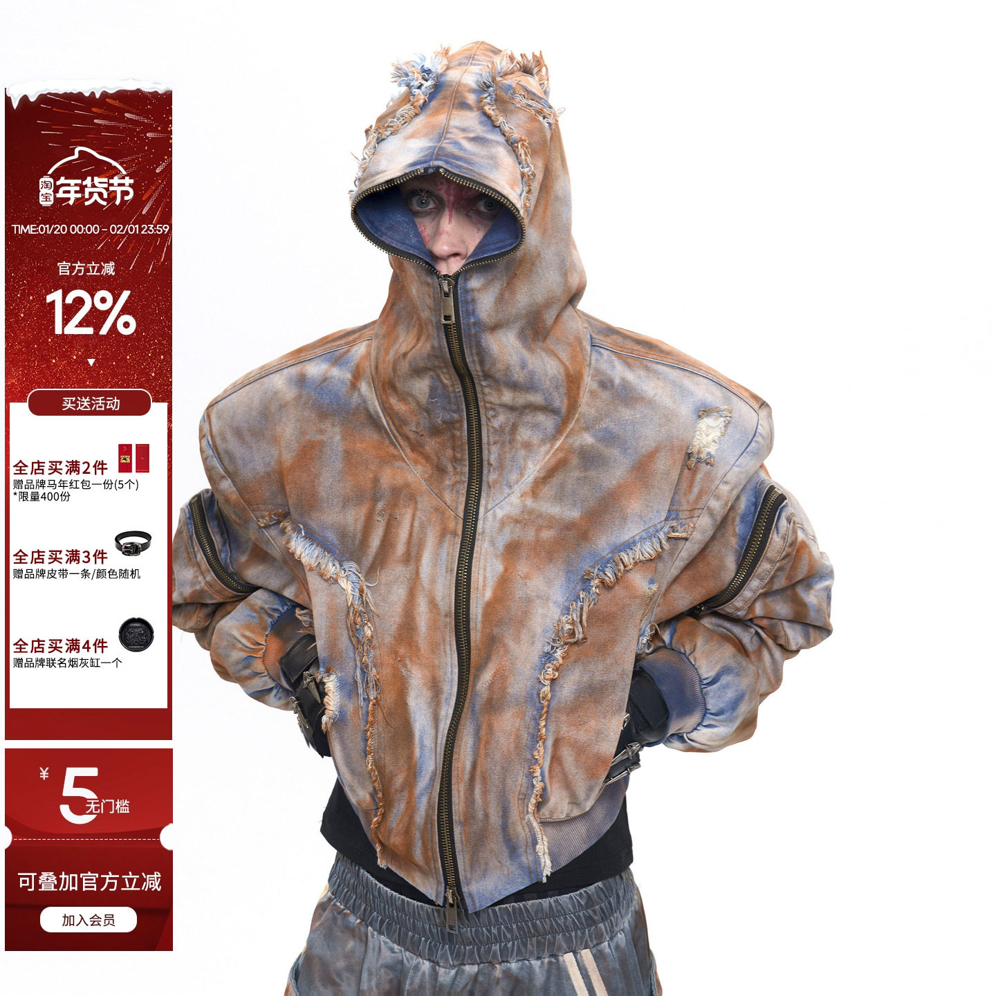 CulturE niche heavy industry deconstructs old shoulder pads hooded denim jacket set metal embellished jeans men