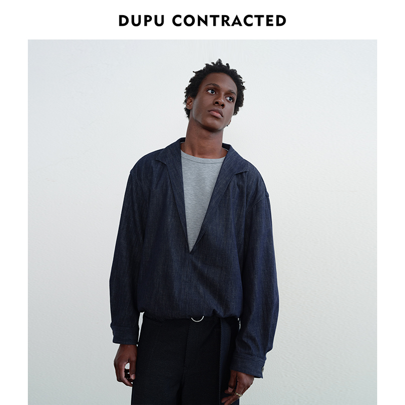 DUPU Denim primary color fake two-piece layered sweatshirt denim series large V-neck simple casual denim jacket