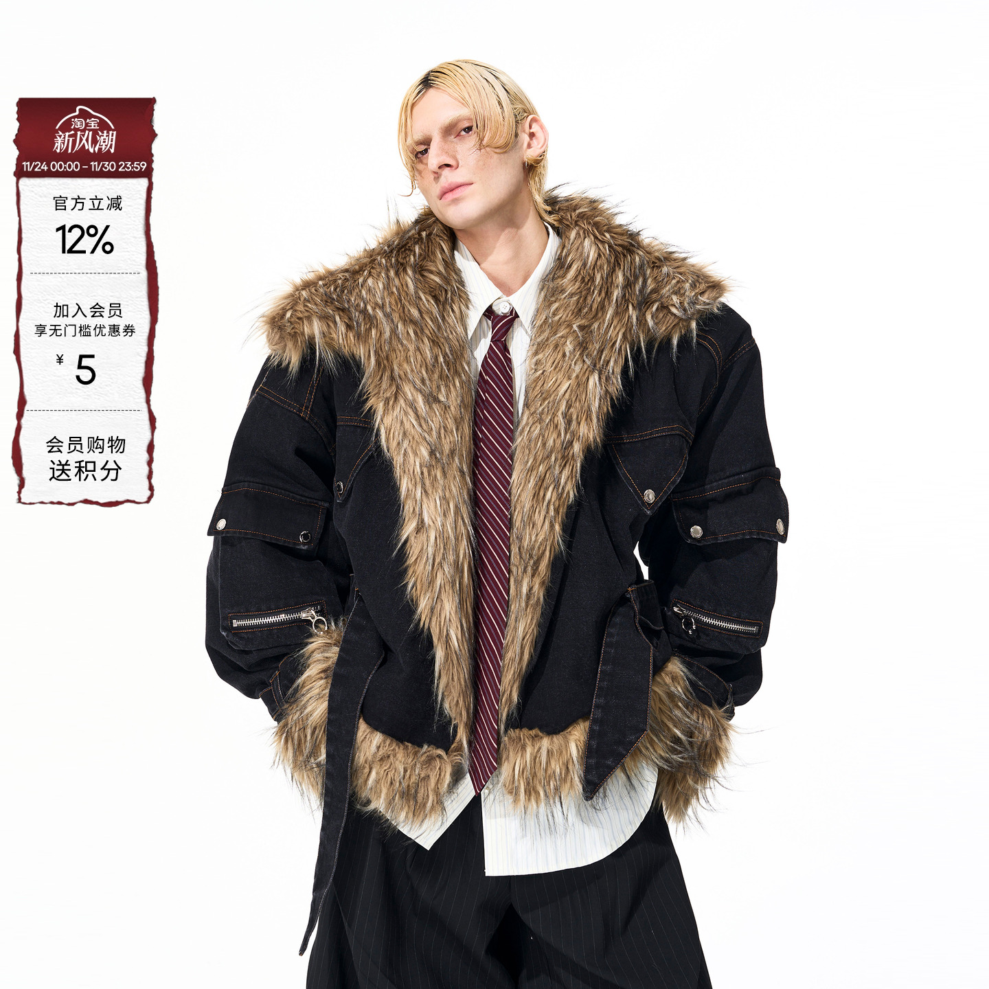 STARTEXCEEDEND Premium Padded Fur Panelled Denim Jacket Men's Winter Silhouette Bat Sleeve Jacket