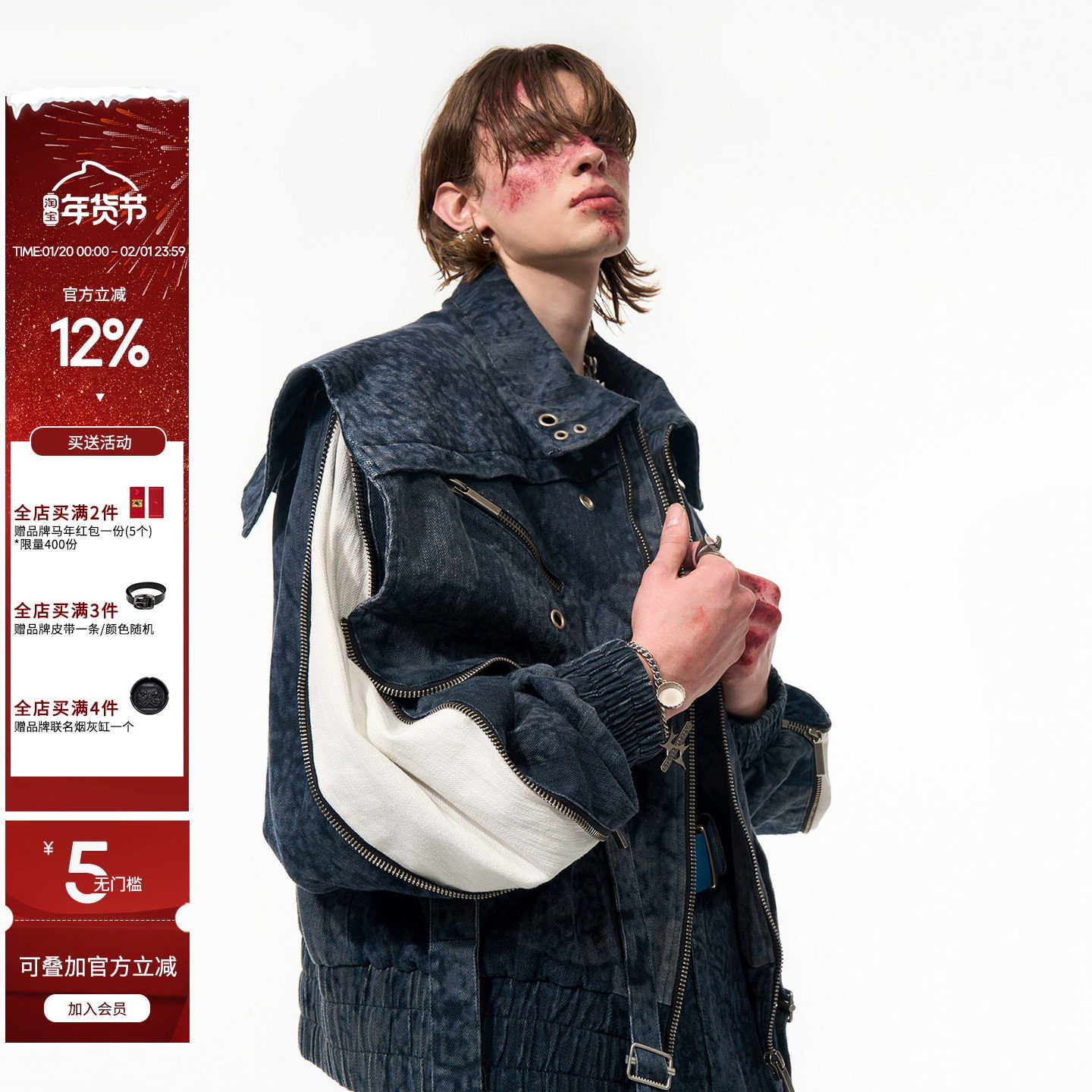 SEE zipper structure stitching fake two denim jacket men's spring new cropped jacket original streamer top