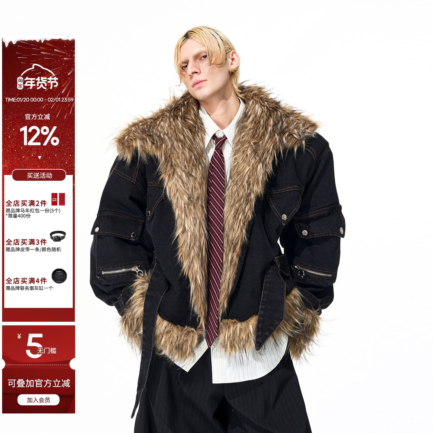 STARTEXCEEDEND Premium Padded Fur Panelled Denim Jacket Men's Winter Silhouette Bat Sleeve Jacket