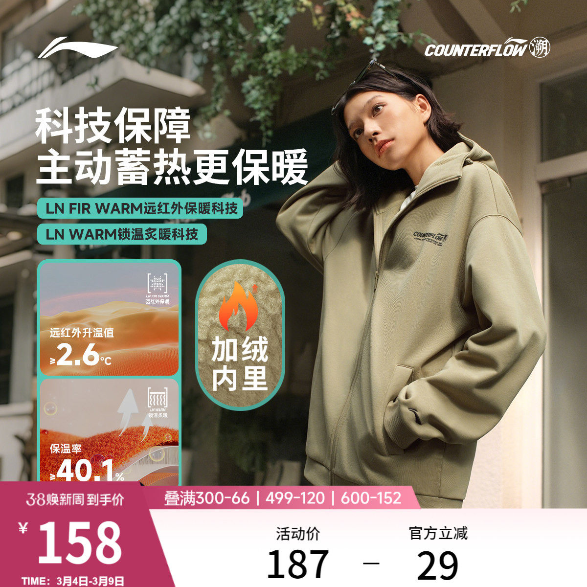 Li Ning Outdoor CF Trace丨Sweatshirt men's and women's new loose long-sleeved tops, cardigans, casual sportswear jackets